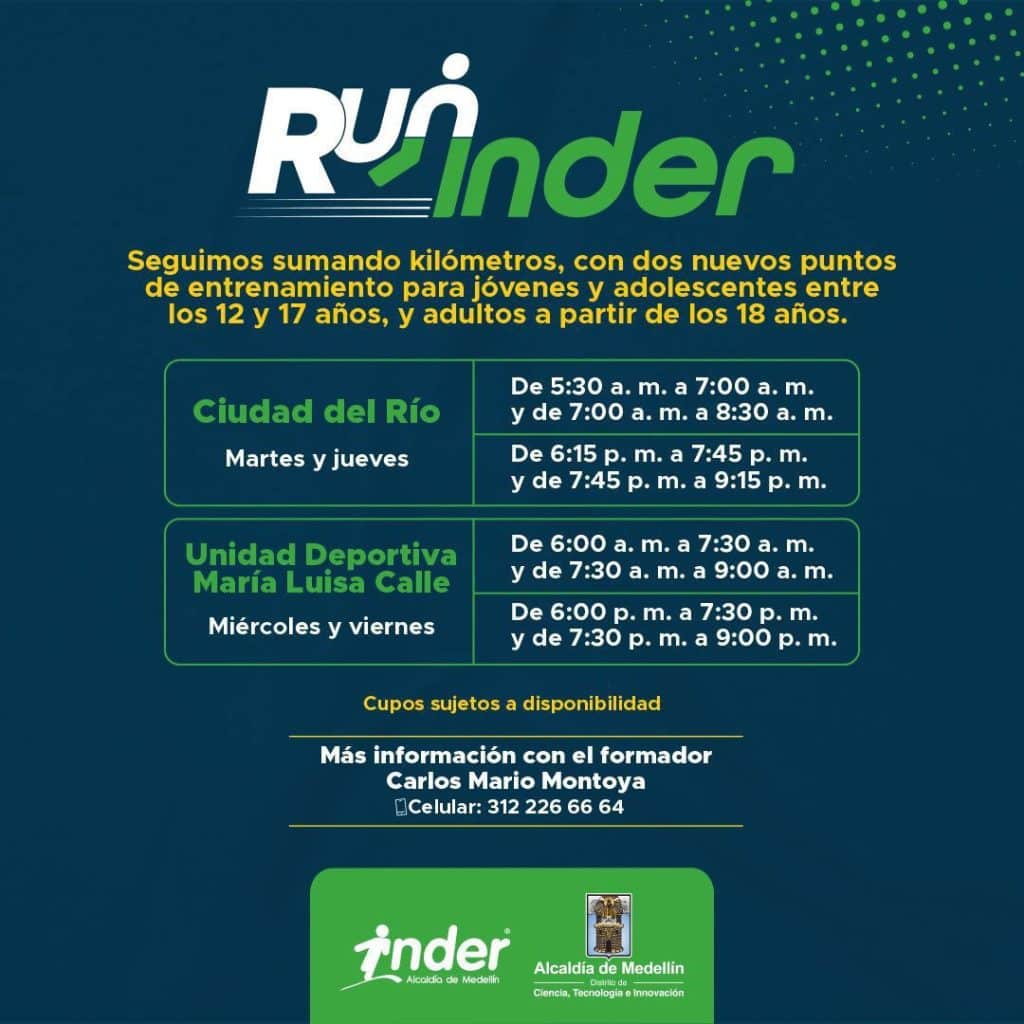 Pensando en los ciudadanos que buscan mejorar su salud física y mental, la Alcaldía de Medellín junto al INDER, han habilitado nuevos cupos de entrenamiento gratuito en dos puntos clave: Ciudad del Río y la Unidad Deportiva María Luisa Calle. Con esta apertura, el programa ya cuenta con cuatro grupos activos (sumándose a los de la Unidad Deportiva Atanasio Girardot y Belén), con los que se proyecta alcanzar los 600 participantes.