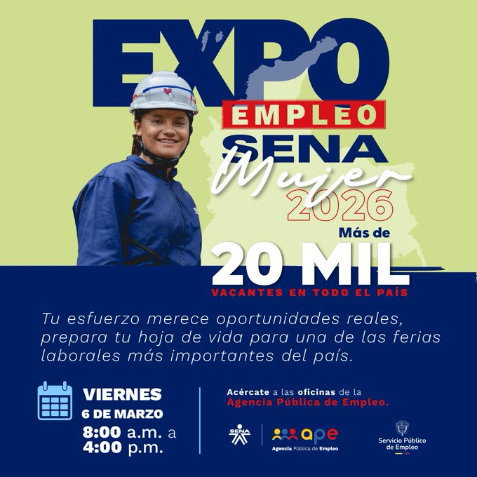 Este viernes, 6 de marzo, se realizará una nueva jornada de Expo Empleo Sena, un espacio para buscar y acceder a las mejores oportunidades de empleo.