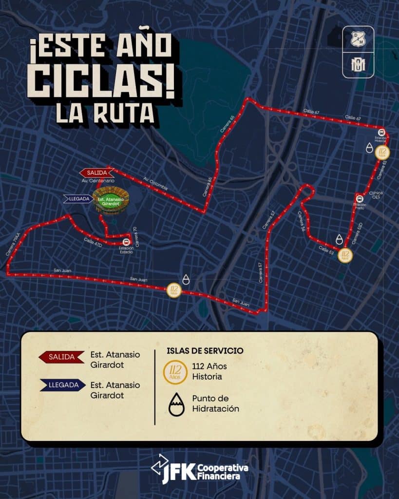 El recorrido saldrá a las 7:00 a. m. del estadio Atanasio Girardot y finalizará en el escenario deportivo.
