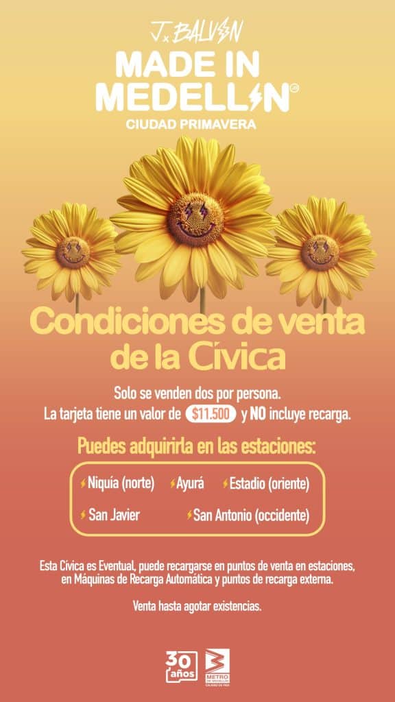 Esta tarjeta cívica conmemorativa se puede conseguir exclusivamente en las estaciones Niquía, Ayurá, Estadio, San Javier y San Antonio.