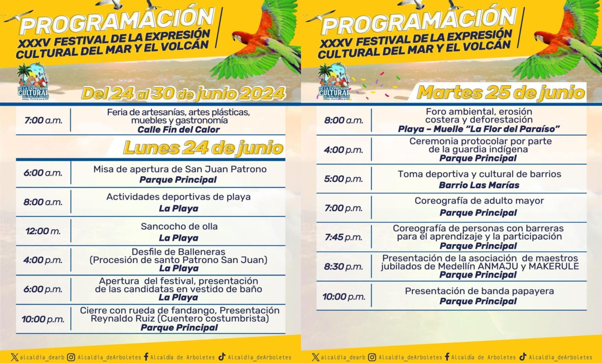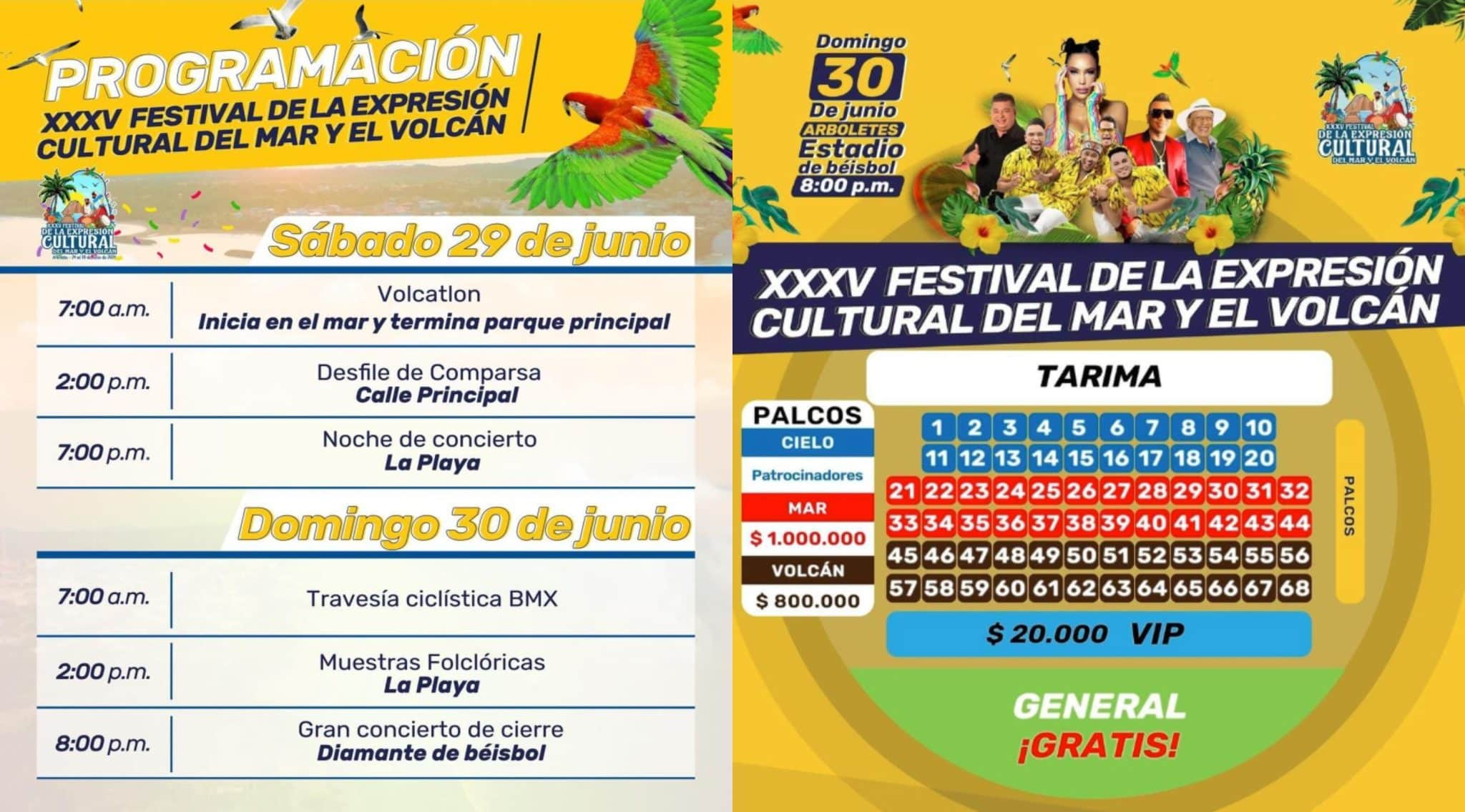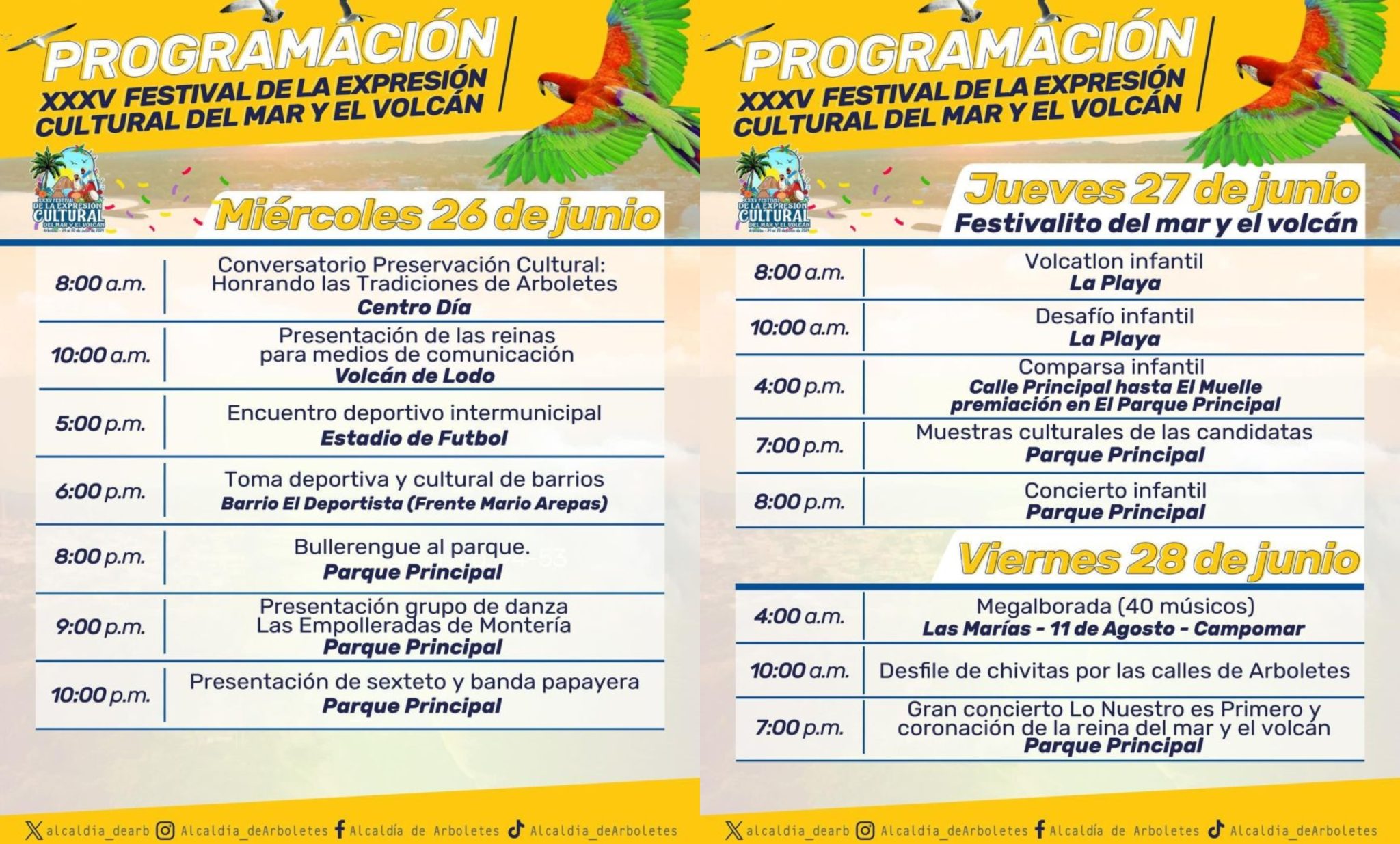 En este festival, se podrá disfrutar de danzas, música, gastronomía, artesanías, deportes, de la escogencia de la reina del Mar y el Volcán y muchas más actividades que resaltan las costumbres de los urabaenses.