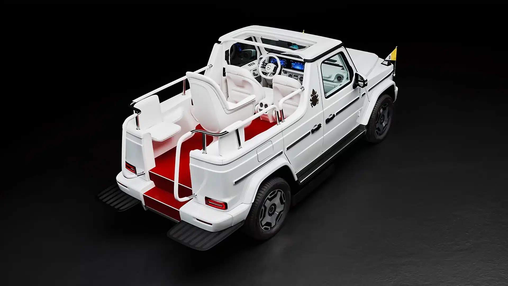2. El nuevo papamóvil está adaptado especialmente para las condiciones de uso del papa. La atención al detalle fue fundamental, desde la silla giratoria hasta el mobiliario interior hecho a mano. Con un diseño que prioriza la comodidad y la velocidad reducida, característica de los recorridos del sumo pontífice.