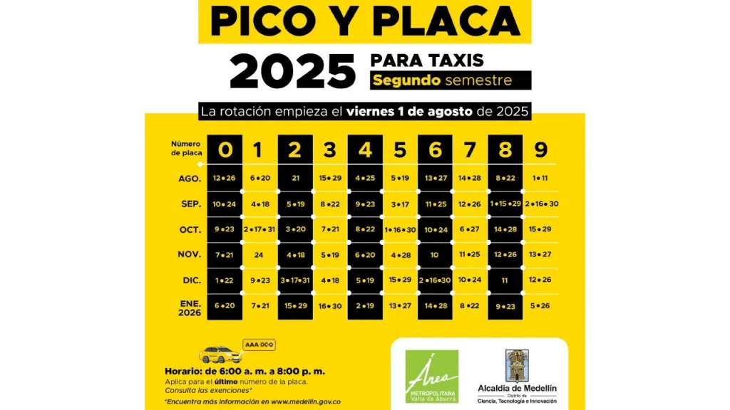 La medida inicia a partir de las 5:00 a. m. y va hasta las 8:00 p. m., además se extiende a todos los municipios del Valle de Aburrá. Así es la rotación para el segundo semestre de 2025: