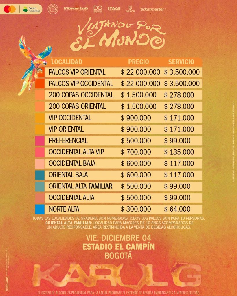 El 4 de diciembre Karol G se presentará en el estadio El Campín en el marco de si gira ‘Tropitour’, por el momento es la única ciudad colombiana incluida en su tour Viajando por el mundo.