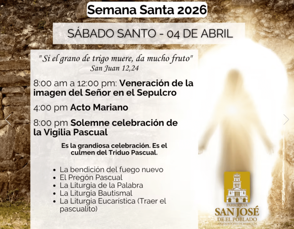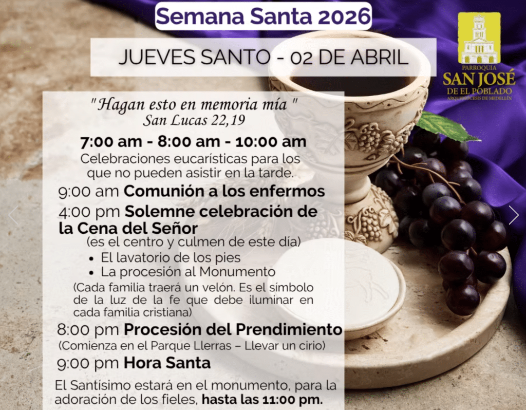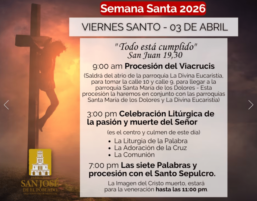 Vea aquí la programación de los días santos en la Parroquia San José de El Poblado: