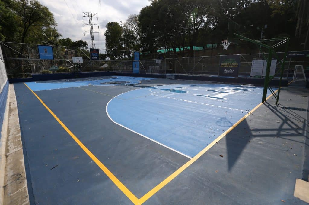 La Alcaldía de Medellín renovó la cancha polideportiva y de baloncesto, ubicada en el barrio Tricentenario, comuna 5 de Medellín, con una inversión de $1.164 millones de pesos.