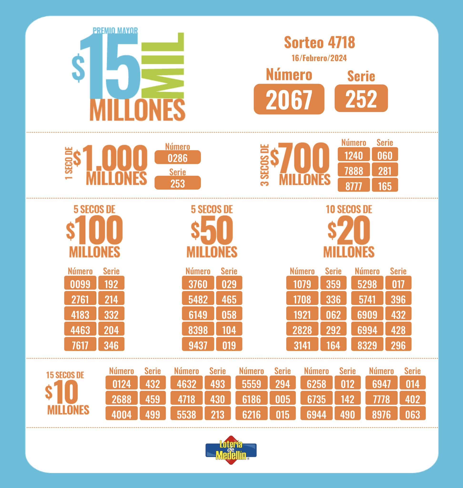 — Lotería de Medellín® (@LoteriaMedellin) February 17, 2024