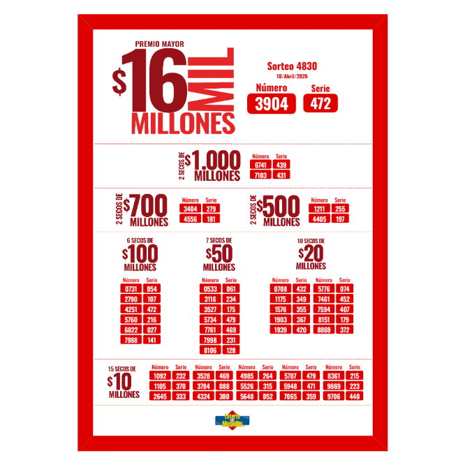 Se jugó el sorteo 4830 de la Lotería de Medellín del viernes, 10 de abril de 2026. Si usted hizo el chance, revise sus recibos, pues puede ser uno de los ganadores.