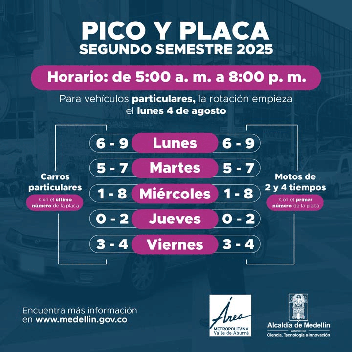 A partir del martes, 23 de diciembre, y hasta el próximo viernes, 16 de enero de 2026, la Alcaldía de Medellín determinó la suspensión temporal del Pico y Placa.