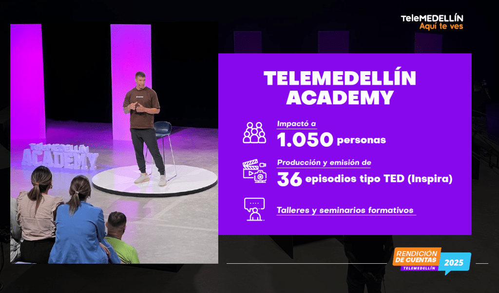 Uno de los proyectos importantes fue la realización de Telemedellín Academy, un espacio que impactó a 1050 personas, con 36 episodios, donde expertos realizaron talleres y seminarios formativos en diferentes disciplinas.
